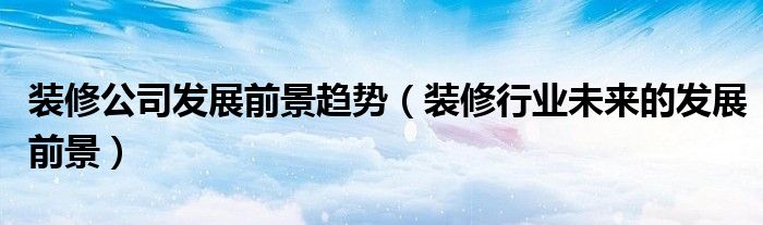 装修公司发展前景趋势(装修行业未来的发展前景)