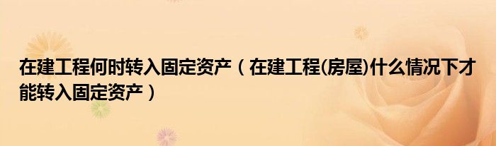 在建工程何时转入固定资产(在建工程(房屋)什么情况下才能转入固定资产)
