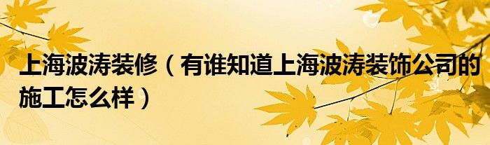导读 大家好,小编慧慧来为大家解答以上的问题。上海波涛装修,有谁知道上海波涛装饰公司的施工怎么样很多人还不知道,现在让我们一起来看看吧!