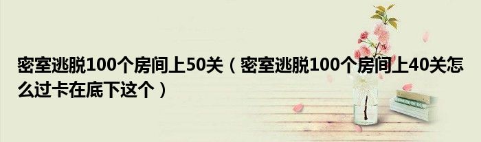 密室逃脱100个房间上50关(密室逃脱100个房间上40关怎么过卡在底下这个)
