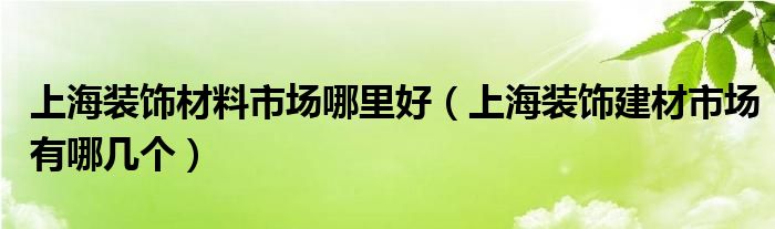 上海装饰材料市场哪里好(上海装饰建材市场有哪几个)