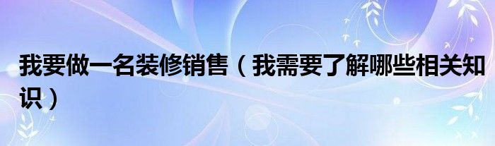 导读 大家好,小编慧慧来为大家解答以上的问题。我要做一名装修销售,我需要了解哪些相关知识很多人还不知道,现在让我们一起来看看吧!1、当我
