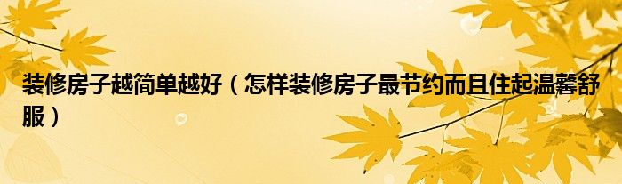 装修房子越简单越好(怎样装修房子最节约而且住起温馨舒服)