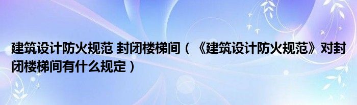 建筑设计防火规范 封闭楼梯间(《建筑设计防火规范》对封闭楼梯间有什么规定)