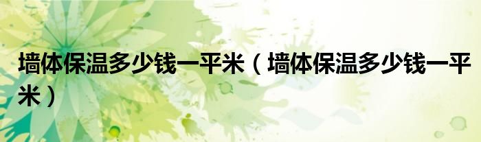 墙体保温多少钱一平米(墙体保温多少钱一平米)