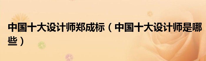 大家好,小编慧慧来为大家解答以上的问题。中国十大设计师郑成标,中国十大设计师是哪些很多人还不知道,现在让我们一起来看看吧!