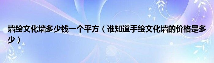 导读 大家好,小编慧慧来为大家解答以上的问题。墙绘文化墙多少钱一个平方,谁知道手绘文化墙的价格是多少很多人还不知道,现在让我们一起来看看