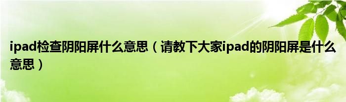 ipad检查阴阳屏什么意思(请教下大家ipad的阴阳屏是什么意思)
