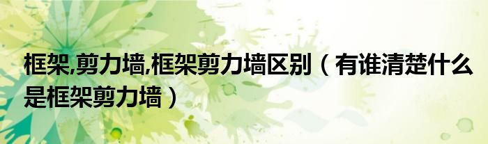 大家好,小编慧慧来为大家解答以上的问题。框架,剪力墙,框架剪力墙区别,有谁清楚什么是框架剪力墙很多人还不知道,现在让我们一起来看看吧!
