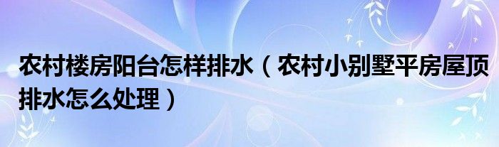 导读 大家好,小编慧慧来为大家解答以上的问题。农村楼房阳台怎样排水,农村小别墅平房屋顶排水怎么处理很多人还不知道,现在让我们一起来看看吧