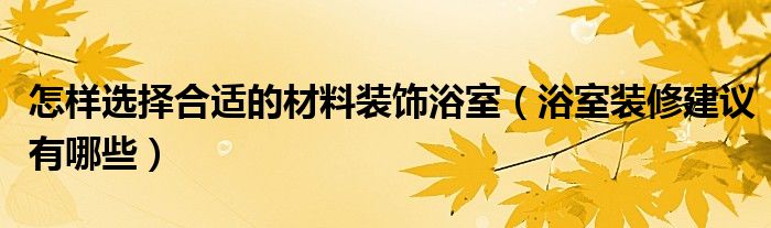 怎样选择合适的材料装饰浴室(浴室装修建议有哪些)