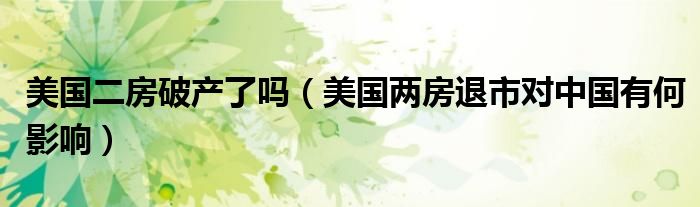 导读 大家好,小编慧慧来为大家解答以上的问题。美国二房破产了吗,美国两房退市对中国有何影响很多人还不知道,现在让我们一起来看看吧!1、房