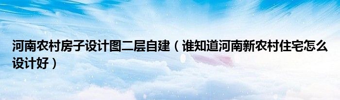 导读 大家好,小编慧慧来为大家解答以上的问题。河南农村房子设计图二层自建,谁知道河南新农村住宅怎么设计好很多人还不知道,现在让我们一起来