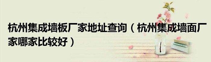 杭州集成墙板厂家地址查询(杭州集成墙面厂家哪家比较好)