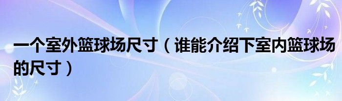 导读 大家好,小编慧慧来为大家解答以上的问题。一个室外篮球场尺寸,谁能介绍下室内篮球场的尺寸很多人还不知道,现在让我们一起来看看吧!1、