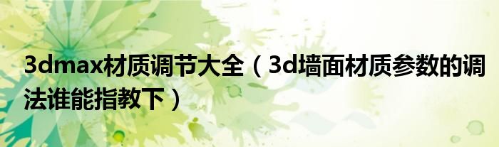 导读 大家好,小编慧慧来为大家解答以上的问题。3dmax材质调节大全,3d墙面材质参数的调法谁能指教下很多人还不知道,现在让我们一起来看看吧!1
