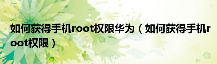 如何获得手机root权限华为(如何获得手机root权限)