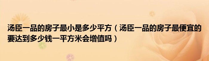 汤臣一品的房子最小是多少平方(汤臣一品的房子最便宜的要达到多少钱一平方米会增值吗)