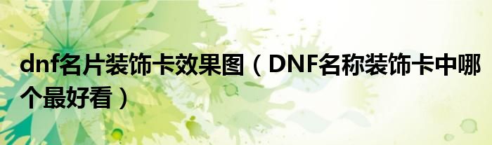 导读 大家好,小编慧慧来为大家解答以上的问题。dnf名片装饰卡效果图,DNF名称装饰卡中哪个最好看很多人还不知道,现在让我们一起来看看吧!1、=