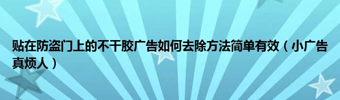 导读 大家好,小编慧慧来为大家解答以上的问题。贴在防盗门上的不干胶广告如何去除方法简单有效,小广告真烦人很多人还不知道,现在让我们一起来