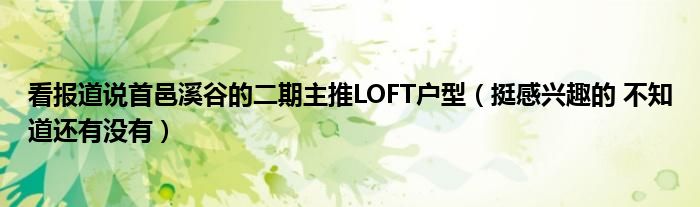 看报道说首邑溪谷的二期主推LOFT户型(挺感兴趣的 不知道还有没有)