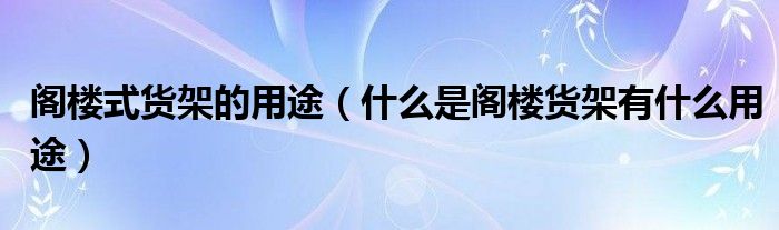 阁楼式货架的用途(什么是阁楼货架有什么用途)