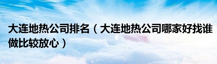 导读 大家好,小编慧慧来为大家解答以上的问题。大连地热公司排名,大连地热公司哪家好找谁做比较放心很多人还不知道,现在让我们一起来看看吧!