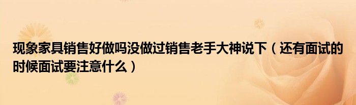 现象家具销售好做吗没做过销售老手大神说下(还有面试的时候面试要注意什么)