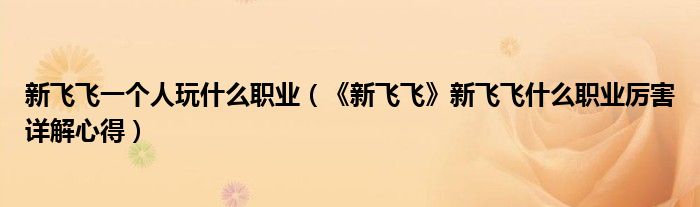 新飞飞一个人玩什么职业(《新飞飞》新飞飞什么职业厉害详解心得)