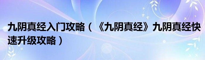 九阴真经入门攻略(《九阴真经》九阴真经快速升级攻略)