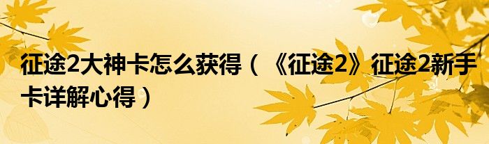 征途2大神卡怎么获得(《征途2》征途2新手卡详解心得)