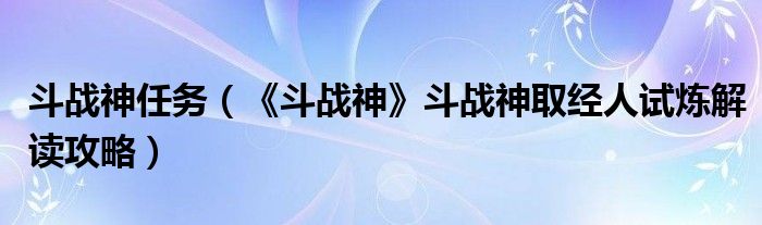 大家好,太太来为大家解答以上问题。斗战神任务,《斗战神》斗战神取经人试炼解读攻略很多人还不知道,现在让我们一起来看看吧!