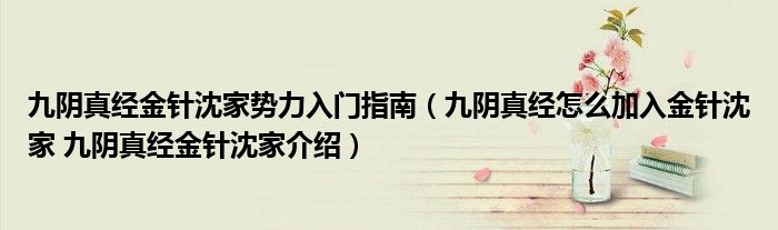 九阴真经金针沈家势力入门指南(九阴真经怎么加入金针沈家 九阴真经金针沈家介绍)