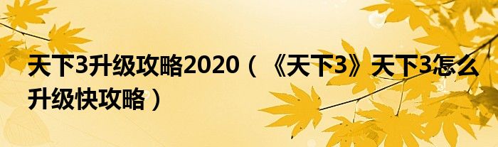 天下3升级攻略2020(《天下3》天下3怎么升级快攻略)
