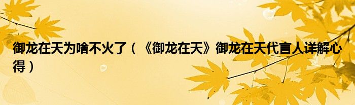 御龙在天为啥不火了(《御龙在天》御龙在天代言人详解心得)