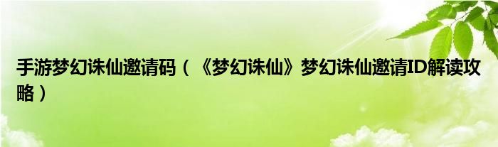 导读 大家好,太太来为大家解答以上问题。手游梦幻诛仙邀请码,《梦幻诛仙》梦幻诛仙邀请ID解读攻略很多人还不知道,现在让我们一起来看看吧!1