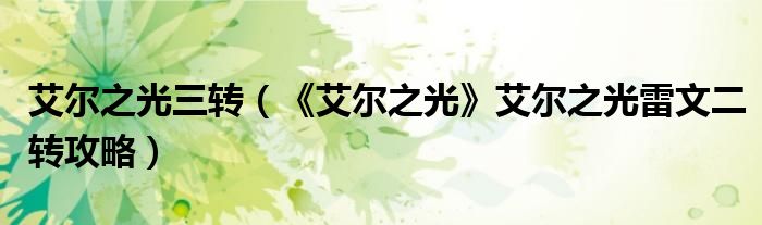 艾尔之光三转(《艾尔之光》艾尔之光雷文二转攻略)