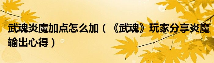 大家好,太太来为大家解答以上问题。武魂炎魔加点怎么加,《武魂》玩家分享炎魔输出心得很多人还不知道,现在让我们一起来看看吧!