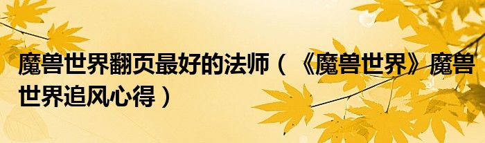 大家好,太太来为大家解答以上问题。魔兽世界翻页最好的法师,《魔兽世界》魔兽世界追风心得很多人还不知道,现在让我们一起来看看吧!