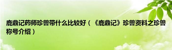 鹿鼎记药师珍兽带什么比较好(《鹿鼎记》珍兽资料之珍兽称号介绍)