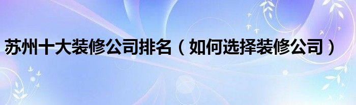 大家好,今天乐乐来为大家解答以上问题。苏州十大装修公司排名,如何选择装修公司很多人还不知道,现在让我们一起来看看吧!