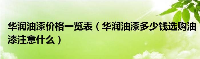 华润油漆价格一览表(华润油漆多少钱选购油漆注意什么)