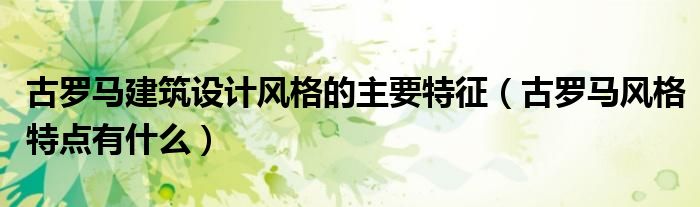 古罗马建筑设计风格的主要特征(古罗马风格特点有什么)