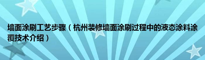 墙面涂刷工艺步骤(杭州装修墙面涂刷过程中的液态涂料涂覆技术介绍)
