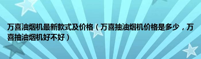 万喜油烟机最新款式及价格(万喜抽油烟机价格是多少,万喜抽油烟机好不好)