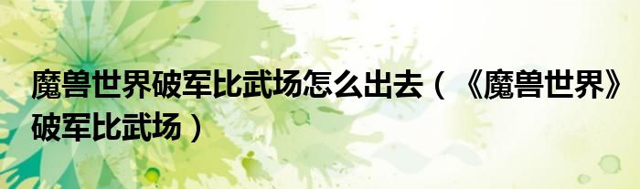 魔兽世界破军比武场怎么出去(《魔兽世界》破军比武场)