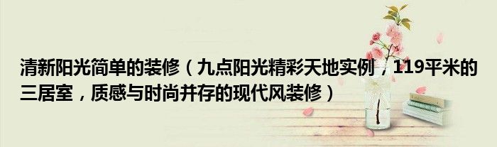 导读 大家好,今天乐乐来为大家解答以上问题。清新阳光简单的装修,九点阳光精彩天地实例,119平米的三居室,质感与时尚并存的现代风装修很多人