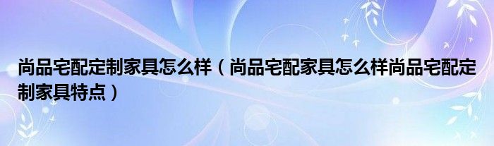 尚品宅配定制家具怎么样(尚品宅配家具怎么样尚品宅配定制家具特点)