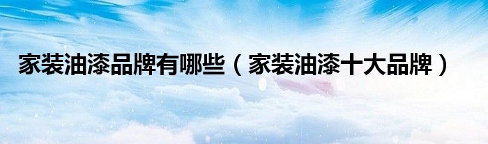 家装油漆品牌有哪些(家装油漆十大品牌)