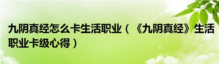 九阴真经怎么卡生活职业(《九阴真经》生活职业卡级心得)